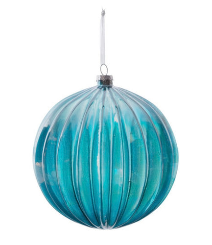 Northern Sky Blue Pleated Glass Ball Ornament