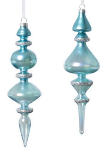 Northern Sky Blue Glass Finial Ornament