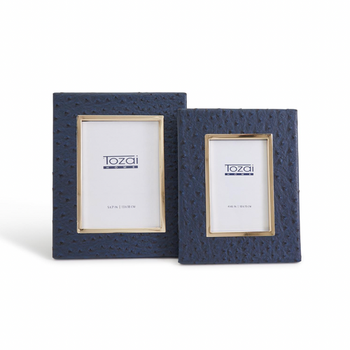 Navy Ostrich Photo Frame with Gold Edge - 2 Sizes
