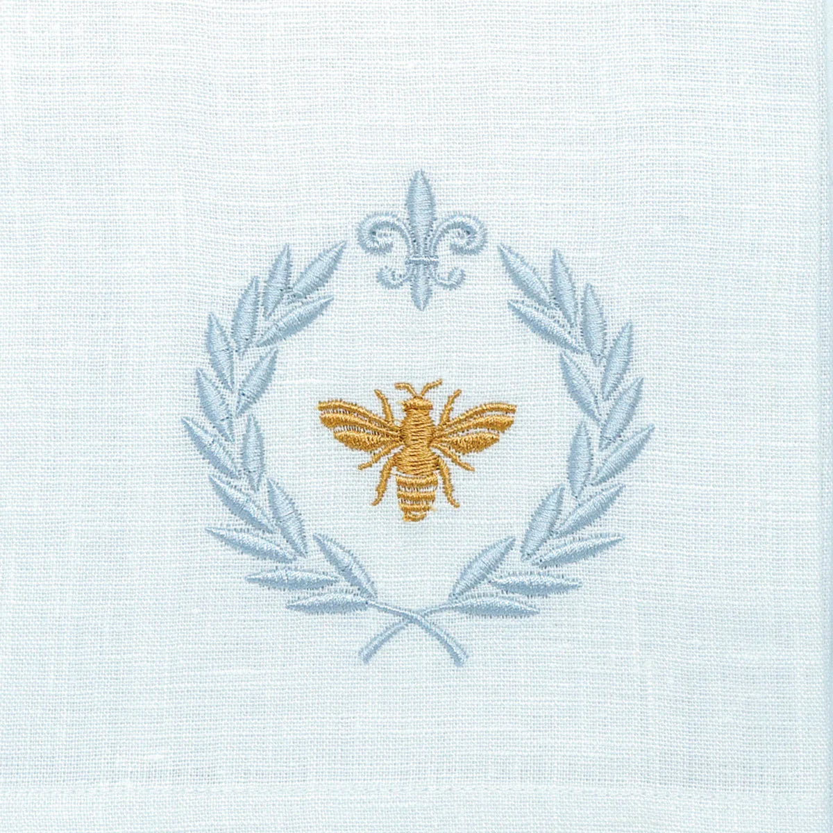 100% European linen embroidered towel. Machine wash and iron flat for a crisp look. Tab on back for hanging.