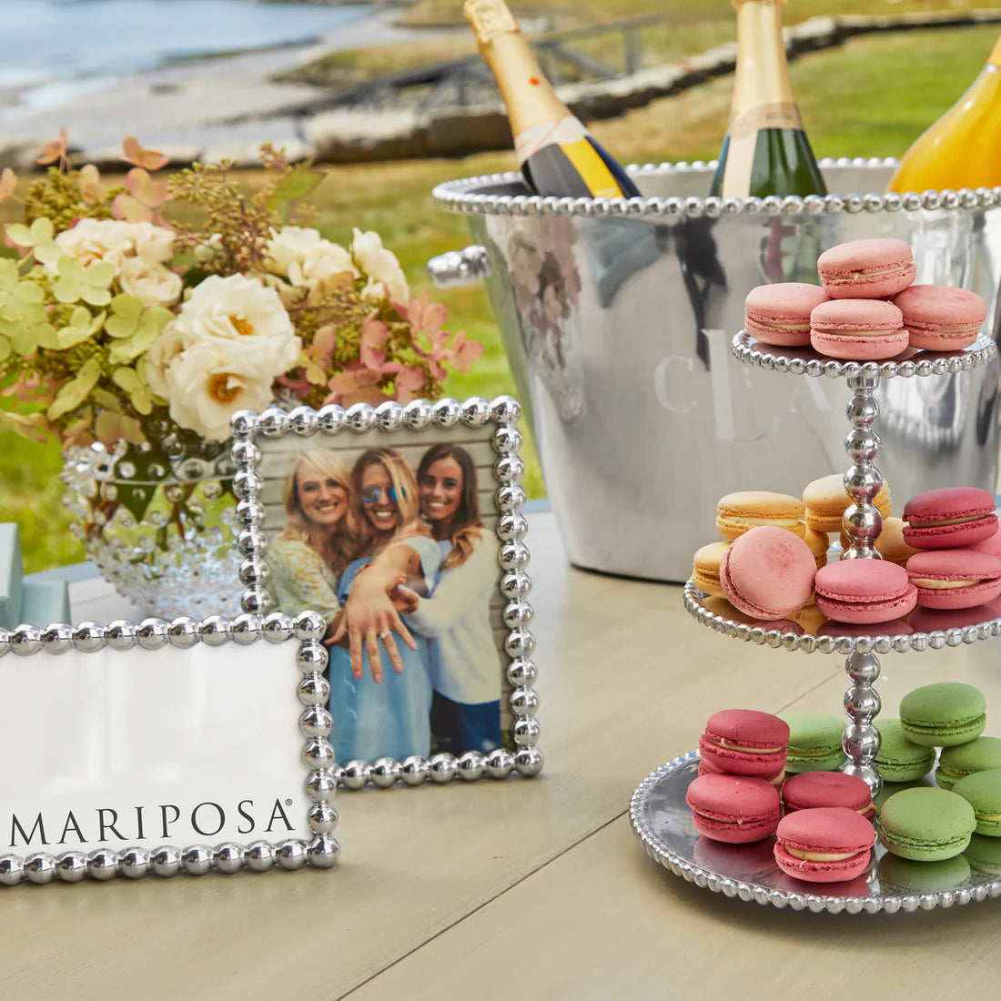 Embrace the art of contemporary design with our Baubles 4x6 Frame, where every photo becomes a work of art. Whether displayed on a desk, shelf, tabletop, this frame effortlessly enhances your decor with its modern flair and understated elegance. Handcrafted from 100% recycled aluminum. Beautifully boxed in a Mariposa Gift Box - we make gifting easy!