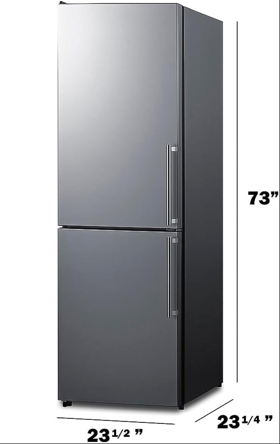 - Energy Star 24-Inch Freezer Refrigerator: Summit's thin-line series of ENERGY STAR-certified counter-depth bottom freezer refrigerators conserves energy and space but adds quality and function with innovative features, convenient sizes, and energy-efficient operation. At 23.25" deep and 23.5" wide, the FFBF235PL offers 10.8 cu. Ft. of storage capacity, ideal for space-challenged kitchens with complete refrigeration needs.