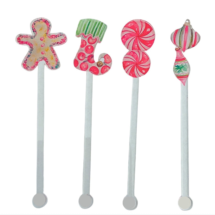 The most adorable drink stirs to elevate your glass this holiday season! Charming watercolor Christmas icons adorn acrylic drink stirrers. This delightful artwork is custom-created by an artist. Complete the look by pairing it with our assortment of frost flex cups, coasters, and napkins.