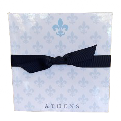 Discover why this Athens Fleur-de-Lis Luxe Notepad has become a customer favorite. Crafted from premium heavy card stock, each 5.5" x 5.5" sheet features an elegant navy blue fleur-de-lis at the top, layered with a subtle watermark design throughout. "ATHENS" is printed in sophisticated navy at the bottom of every page, creating a cohesive, refined aesthetic.