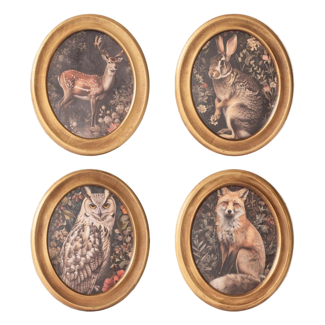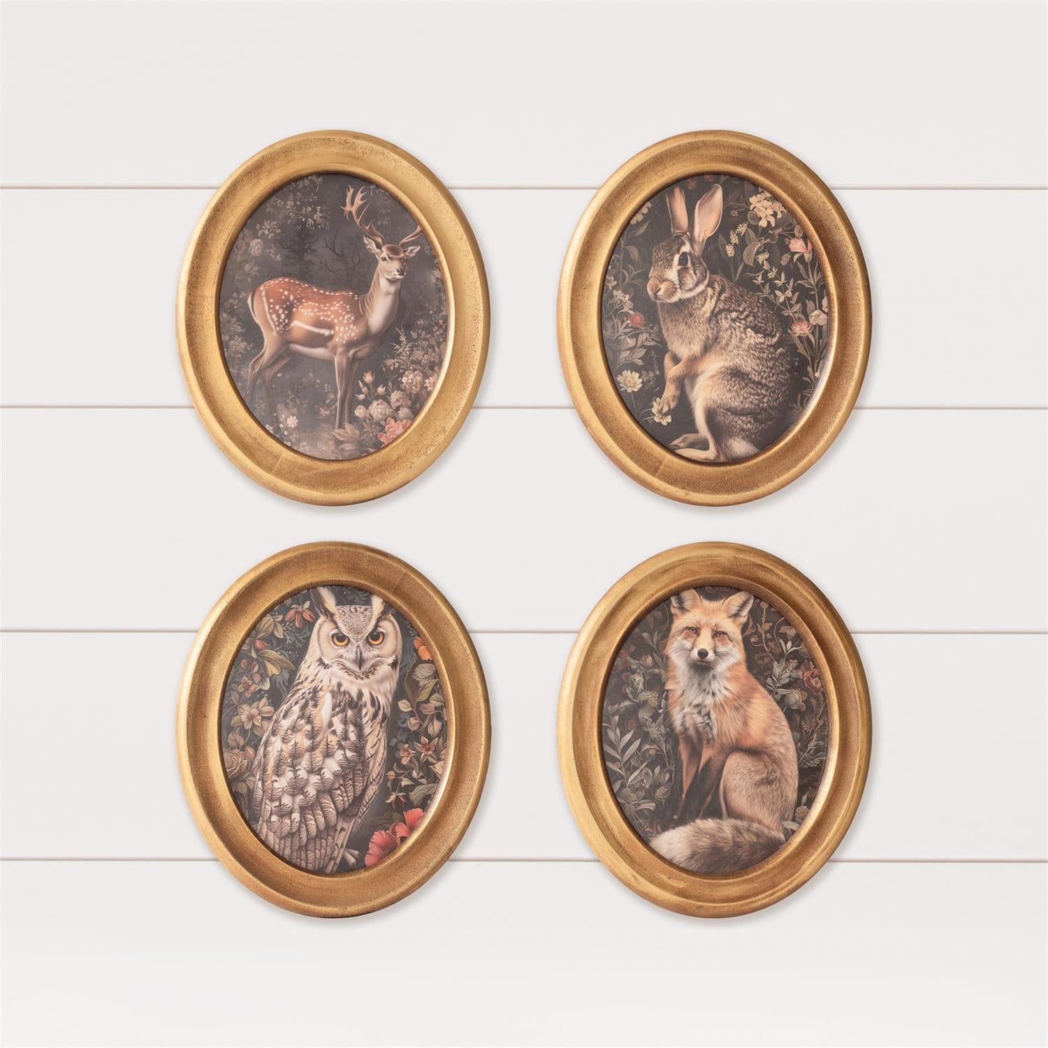 Bring the majesty of the woodland into your home with this stunning framed art collection. Each piece features a beautifully rendered forest creature—select from the noble Stag, clever Fox, wise Owl, or graceful Rabbit—all protected beneath glass in an elegant oval frame with warm gold patina finish. Mix and match all four designs to create an impressive gallery wall that captures nature's timeless appeal and adds sophisticated charm to any room.