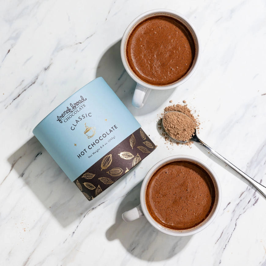 Our Classic Hot Chocolate features chocolate that we craft from directly sourced cacao, combined with organic cacao powder and organic powdered sugar. The resulting hot chocolate is an updated version of a classic - rich, thick, and deeply chocolatey. Intensely satisfying prepared with whole milk, and equally delicious with plant-based milks.