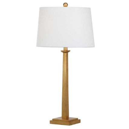 Illuminate any interior with the timeless grace and style of this alluring Andino Table Lamp. Inspired by the Art Deco decadence of New York City’s skyline, Andino’s statuesque silhouette shines glamorously in a gold leaf finish, and the clean lines of its off-white shade complete the look.