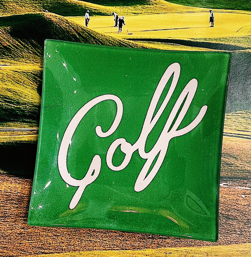 A refined tribute to the timeless sport of golf, this handcrafted glass tray captures the elegance and wit of the game through the art of decoupage. Created by hand in our New York studio, each piece features an original illustration that reflects Ben’s distinctive eye for the charming, the nostalgic, and the delightfully unexpected. Crafted in the revered French tradition of decoupage, the tray is formed from bent glass, its reverse side gently felted for added protection and a finished touch. Elegant yet versatile, it’s equally at home holding correspondence on a desk, serving hors d'oeuvres, or standing proudly on display with a gallery easel or plate hanger. Every tray is food-safe and easily cleaned with a gentle wipe.
