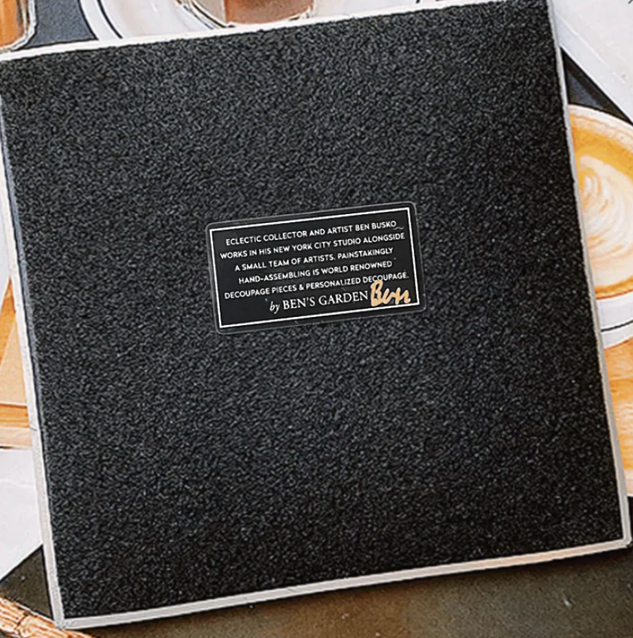 In the French tradition of Decoupage, this bent-glass tray was handcrafted in our New York Studio. This illustration reflects Ben's unique aesthetic for the charming and unusual. Each is individually signed by Ben. Both practical and charming, Ben's signature glass decoupage is food safe, wipe clean and the back side is felted. Also suitable for hanging with a plate hanger and attractive standing on a gallery easel.