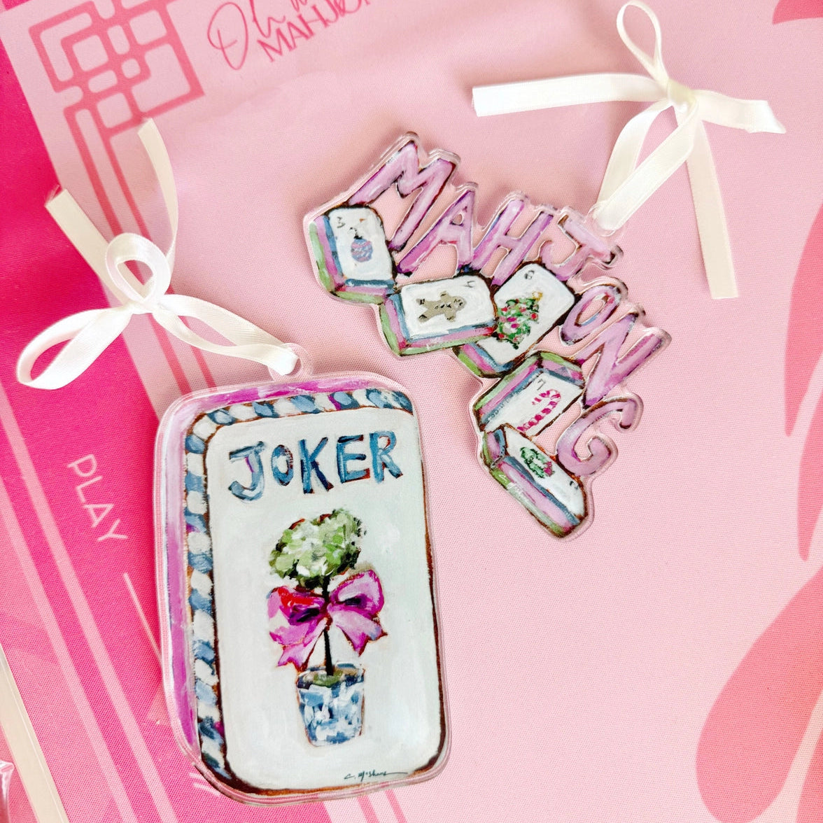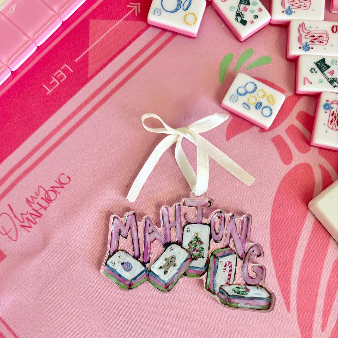 Display your love for the classic game with this charming acrylic ornament. Featuring vibrant pastel-hued tiles and the word "mahjong," it's a delightful way to celebrate your favorite pastime. Complete with an elegant satin ribbon for effortless hanging, this ornament brings personality and nostalgia to any tree or space. Perfect for game enthusiasts seeking a unique seasonal touch.