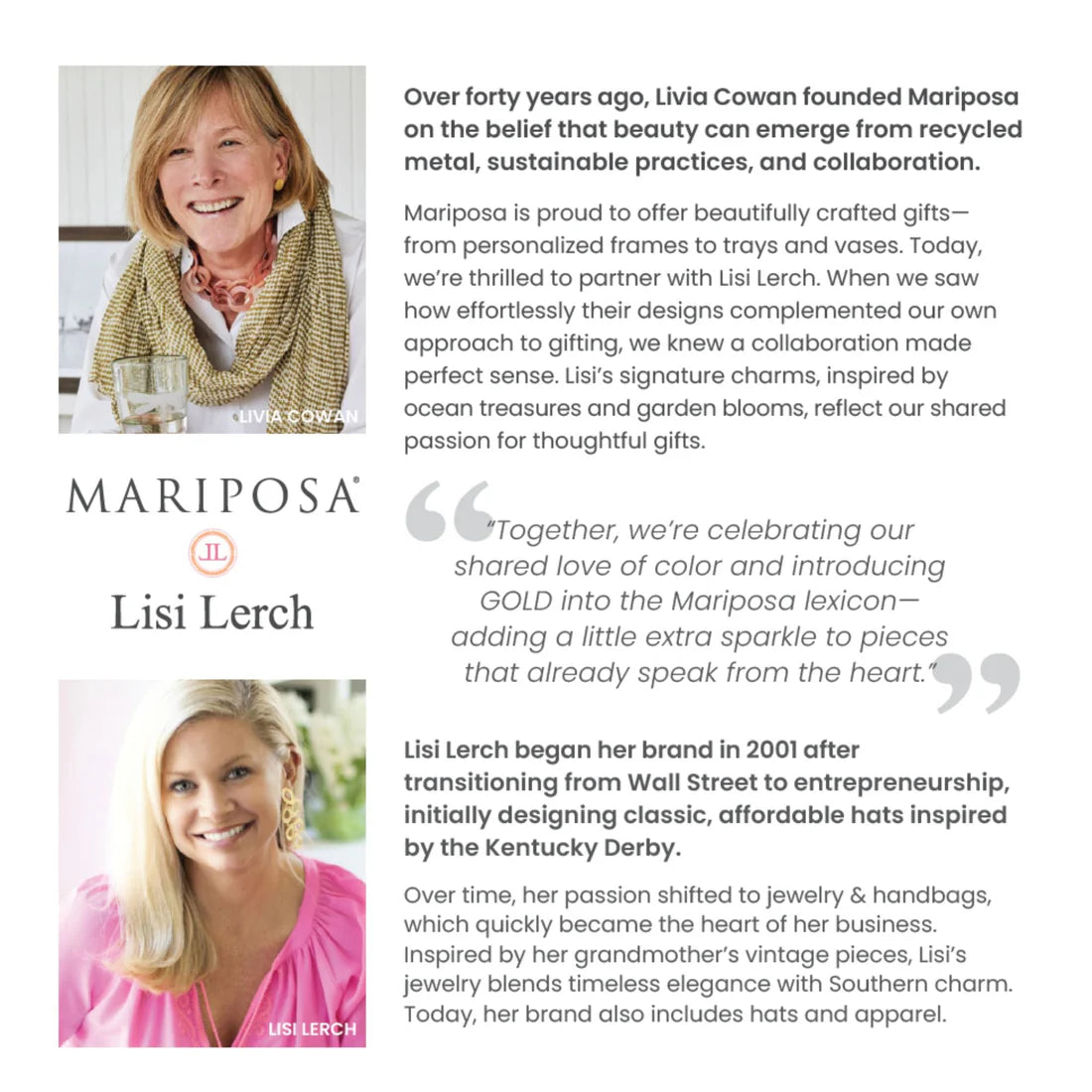 Mariposa is proud to partner with Lisi Lerch, whose eye for elegant, meaningful design aligns perfectly with our mission of offering thoughtful, beautifully crafted gifts. We’ve admired Lisi Lerch’s signature charms—playful, personal details that celebrate the joyful themes in people’s lives, from ocean treasures to garden blooms and bows! Color Theory is a new slant on our fabulous frames that are meticulously crafted by hand from recycled paper.