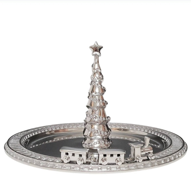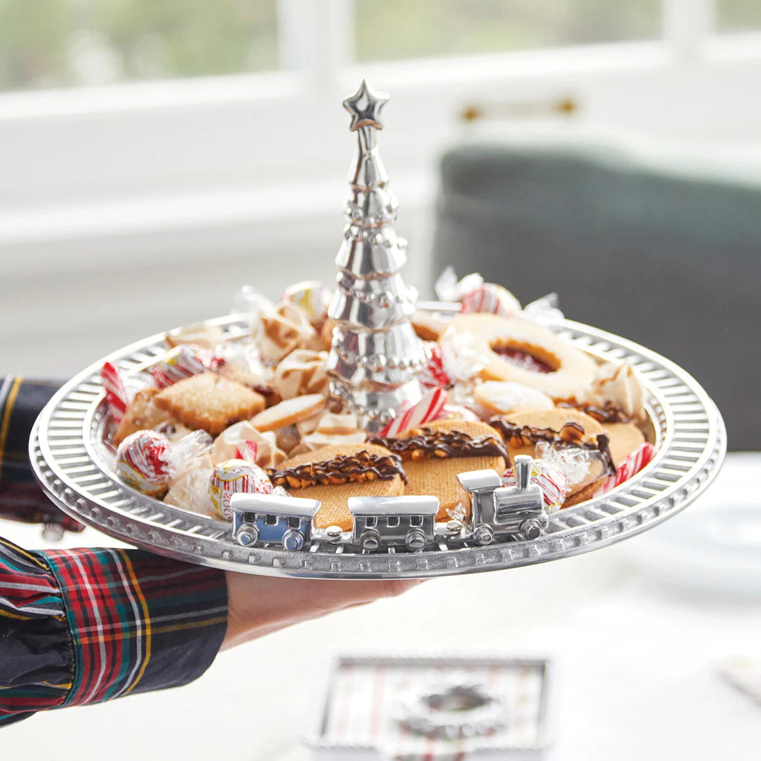 Let holiday treats surround a stately Christmas Tree, bordered by a train on the (working!) tracks. Sculptor Michael Updike created the playful Christmas Tree & Train Server years ago with his own young sons in mind.