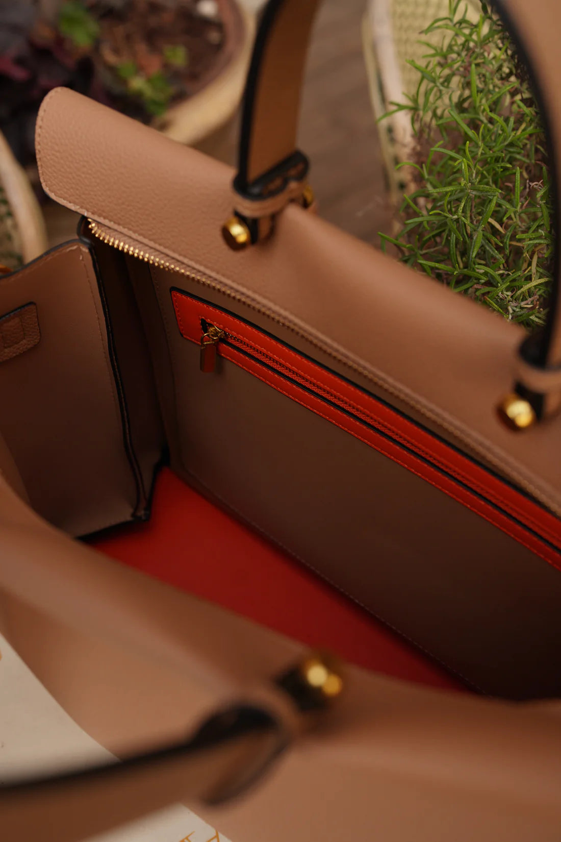 The Vienna Small Carry-On Tote is crafted from durable vegan leather, offering a refined, compact silhouette with newly reinforced handles for lasting comfort. Inside, a padded sleeve keeps your laptop or papers secure, while a thoughtfully designed zippered compartment helps organize your essentials. Perfect for daily commutes or weekend getaways, this tote combines sophistication, practicality, and peace of mind — so you can move through every journey with confidence and ease.