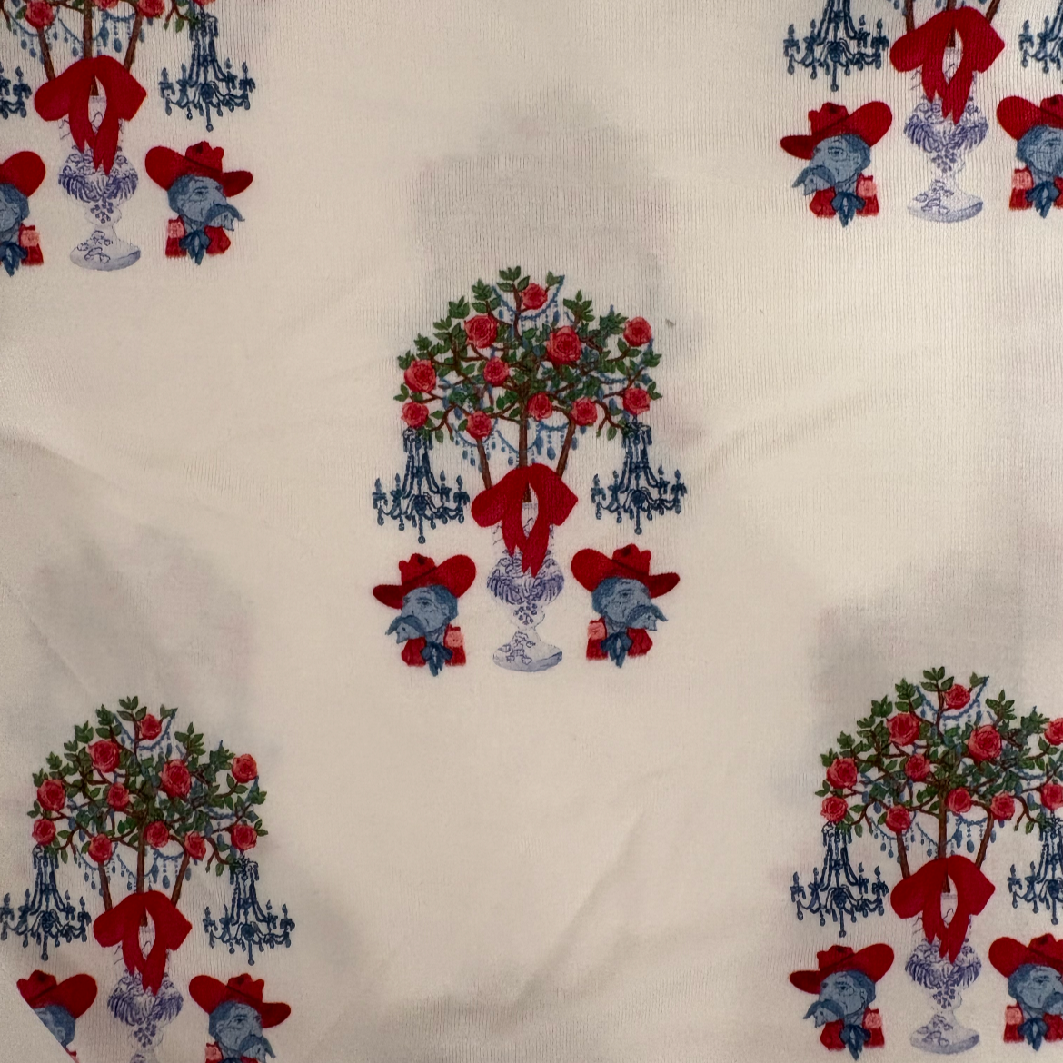 - Allover pattern features illustrated floral accents