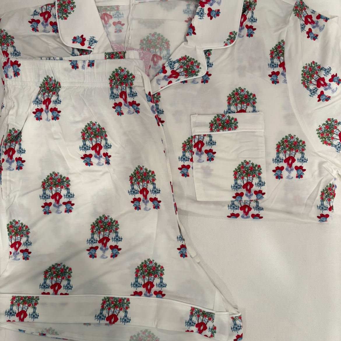 Cheer on your favorite team in cozy style with the red and powder blue gameday Heirloom Pajama Shorts Set. This playful pajama set features tailgate traditions. Show off your school spirit with a vintage-inspired twist. The festive print captures the lively essence of game day, while the timeless color palette provides endless mixing and matching possibilities.