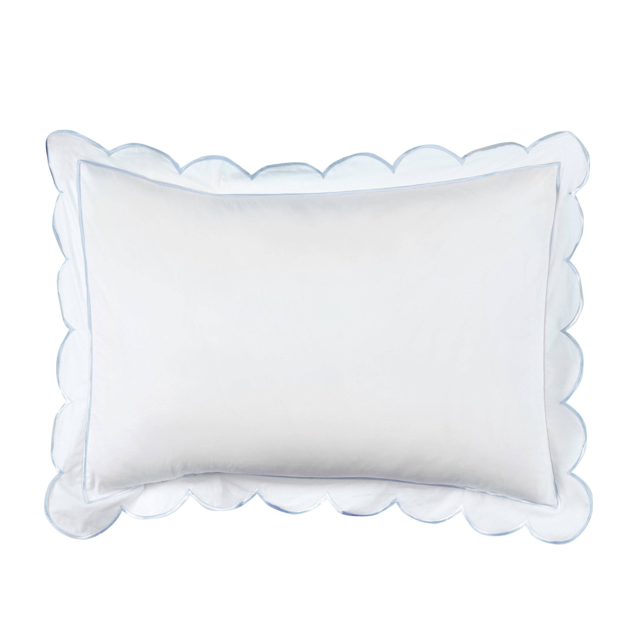 We weave our Percale sheets by laying one warp thread over one weft thread in a one-to-one ratio. This produces a duvet cover with a matte finish that is soft yet durable, crisp and cool to the touch. The single stripe frame is embellished with a scalloped edge for classic luxury and style.