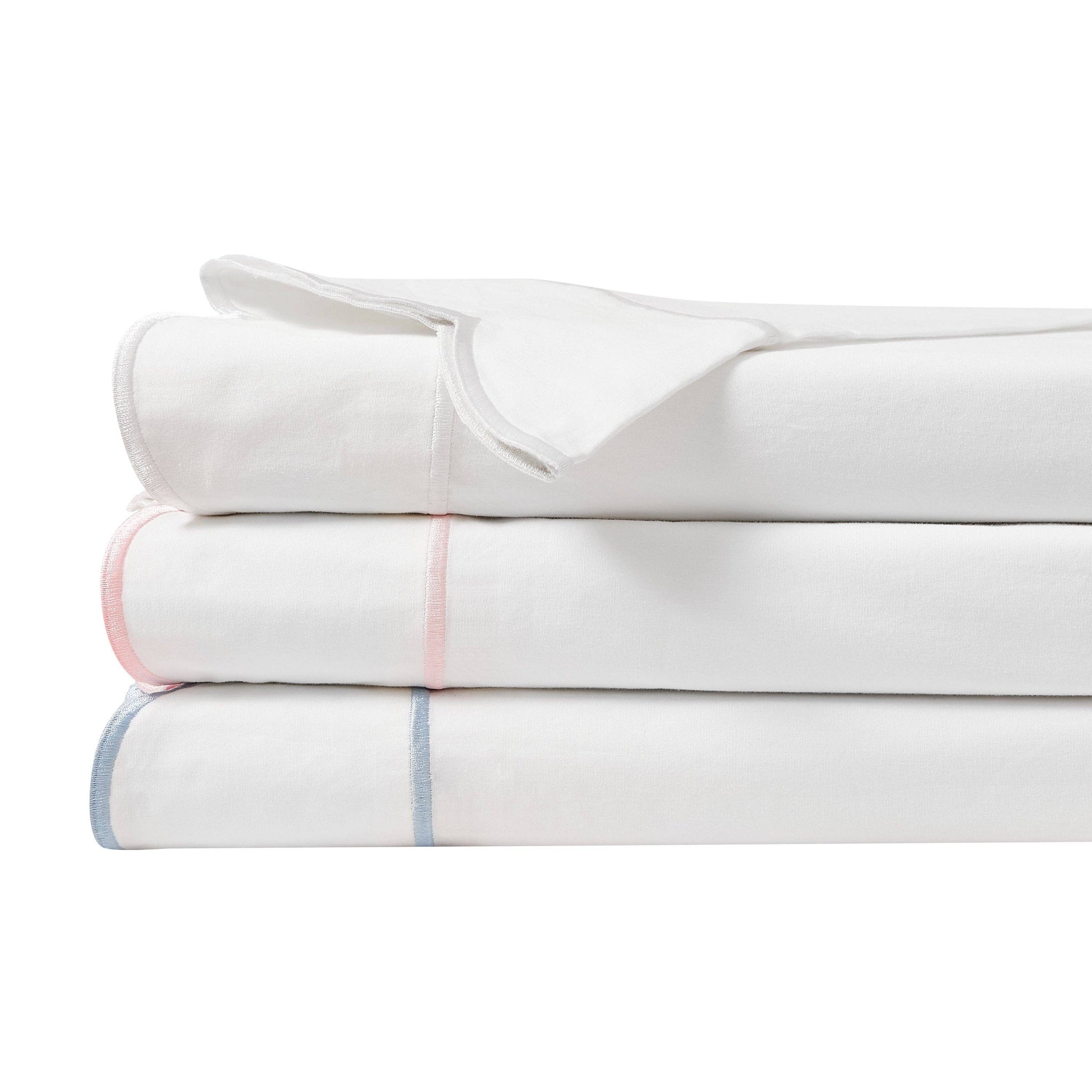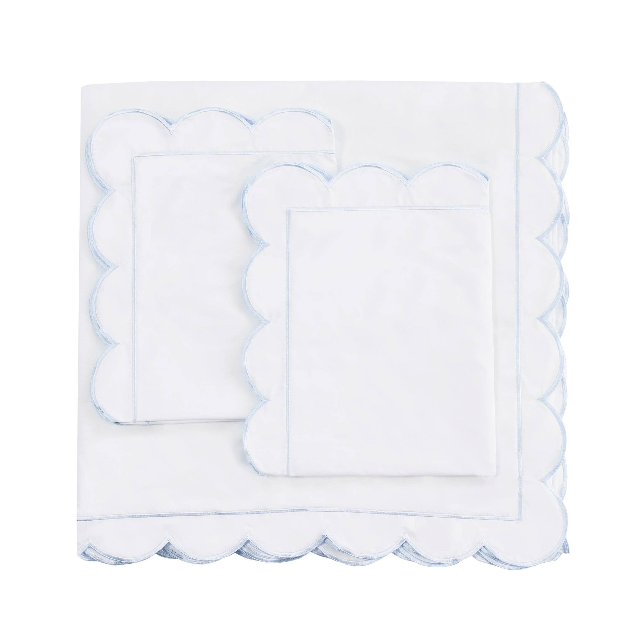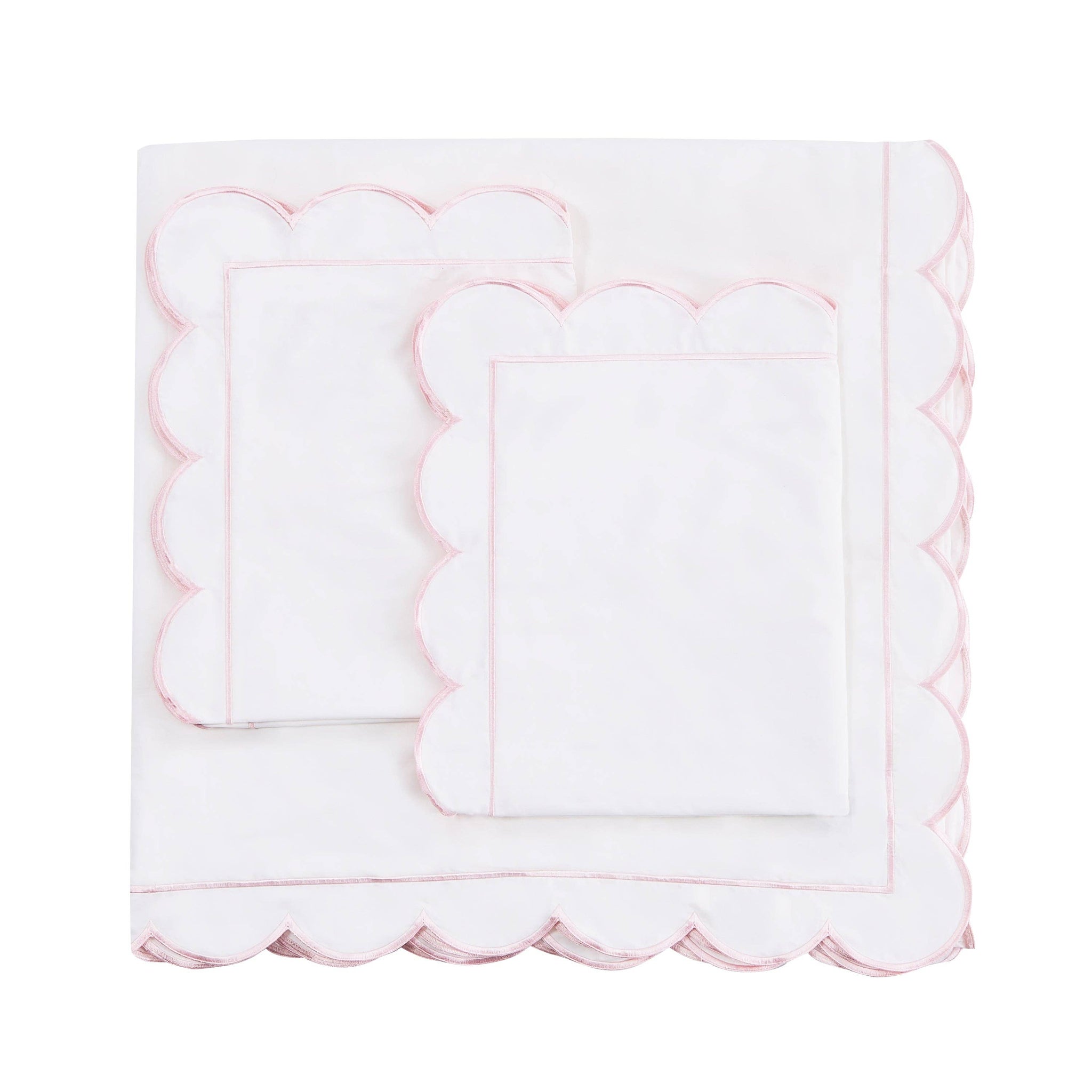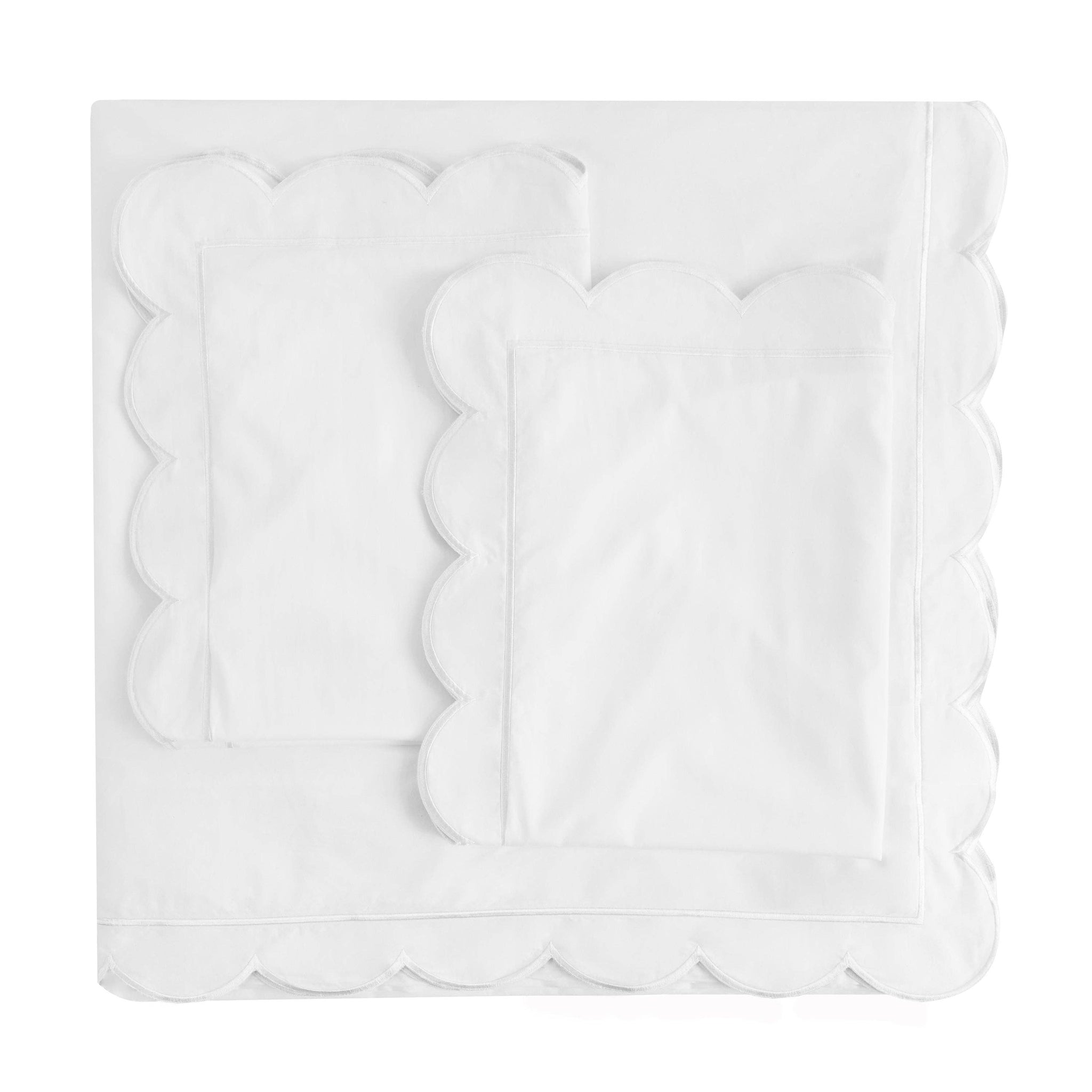 Pairs with Scallop Frame Embroidered Cotton Percale Sheet Set