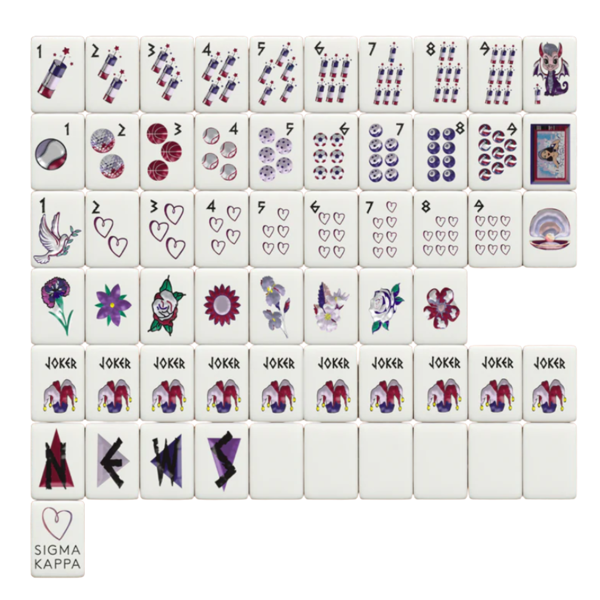 Celebrate a lifelong sisterhood built on personal growth, friendship, service, and loyalty with thisofficially licensed160-tile American Mahjong setin signaturelavender & maroon. Crafted for Sigma Kappa sisters who lead with purpose and live with heart.