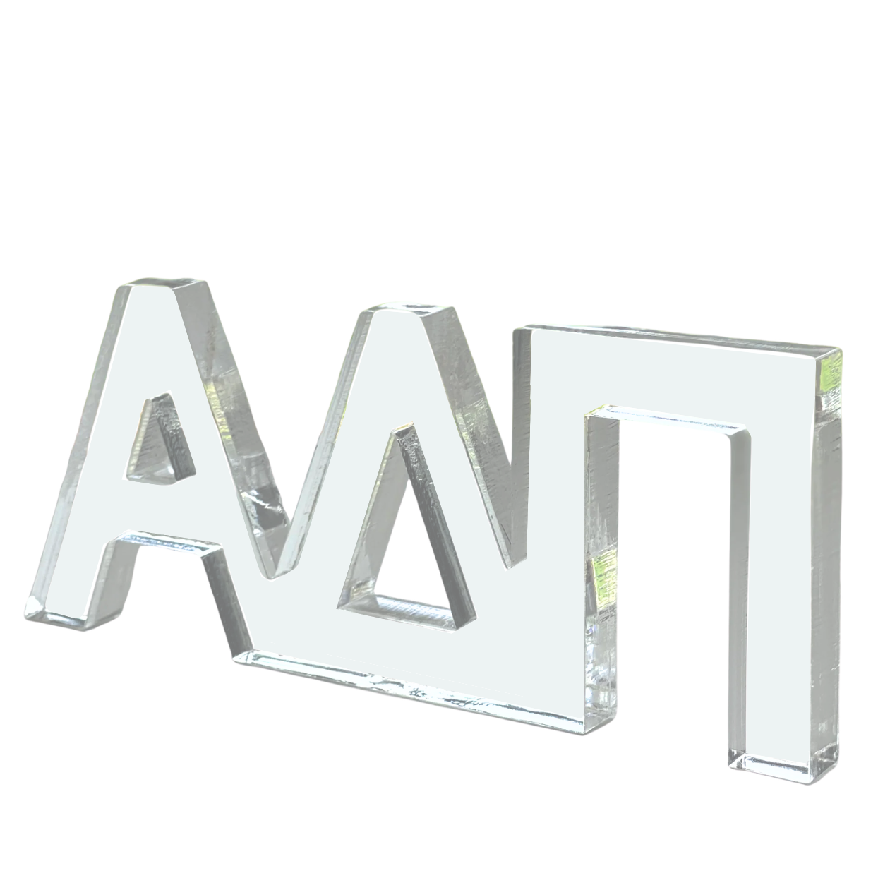 Display your Greek pride with these stunning acrylic shelf letters that bring personality to any space. Crafted from crystal-clear acrylic, each set features letters standing 3 inches tall and a substantial 1/2-inch thickness for impressive presence. Whether you're decorating a dorm room, office, or bedroom, these versatile pieces work beautifully on shelves, desks, or nightstands. With a width of approximately 7 inches, they make a bold statement without overwhelming your décor. Celebrate your sisterhood in style with letters that capture light and showcase your Greek affiliation with elegance.