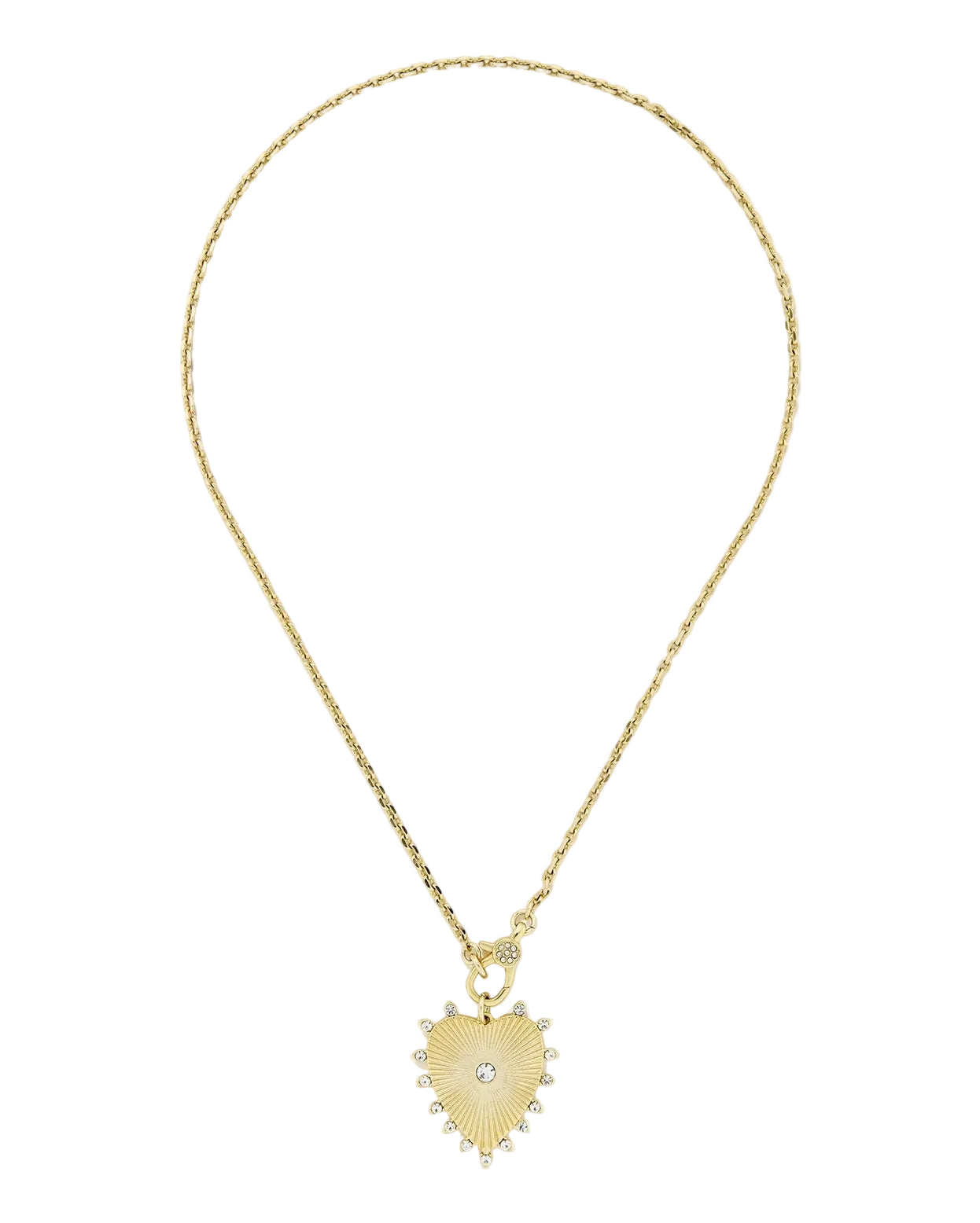 Fall in love with the Stevie Heart Necklace, a charming piece that beautifully combines elegance and whimsy. This enchanting necklace features a removable heart charm adorned with a textured dial, giving it a unique and eye-catching appeal. The heart is delicately embellished with pavé accents that shimmer and sparkle, adding a touch of glam to your ensemble. This necklace is a versatile addition to any jewelry collection, perfect for layering or wearing solo.