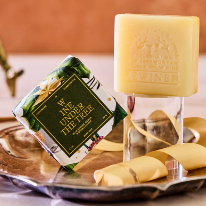 Embrace the spirit of snowy evenings and warm holiday memories with our Wine Under the Tree Soap. This invigorating bar combines the crisp scent of freshly cut pine with subtle hints of your favorite red wine.