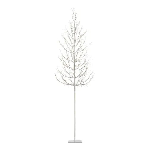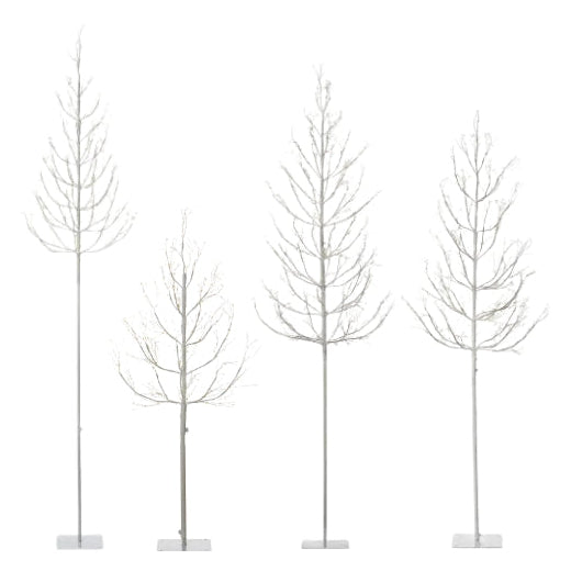 A beautiful selection of whimsical, winter white, lighted trees. 4 sizes to choose from. Two are adjustable. LED Lights.